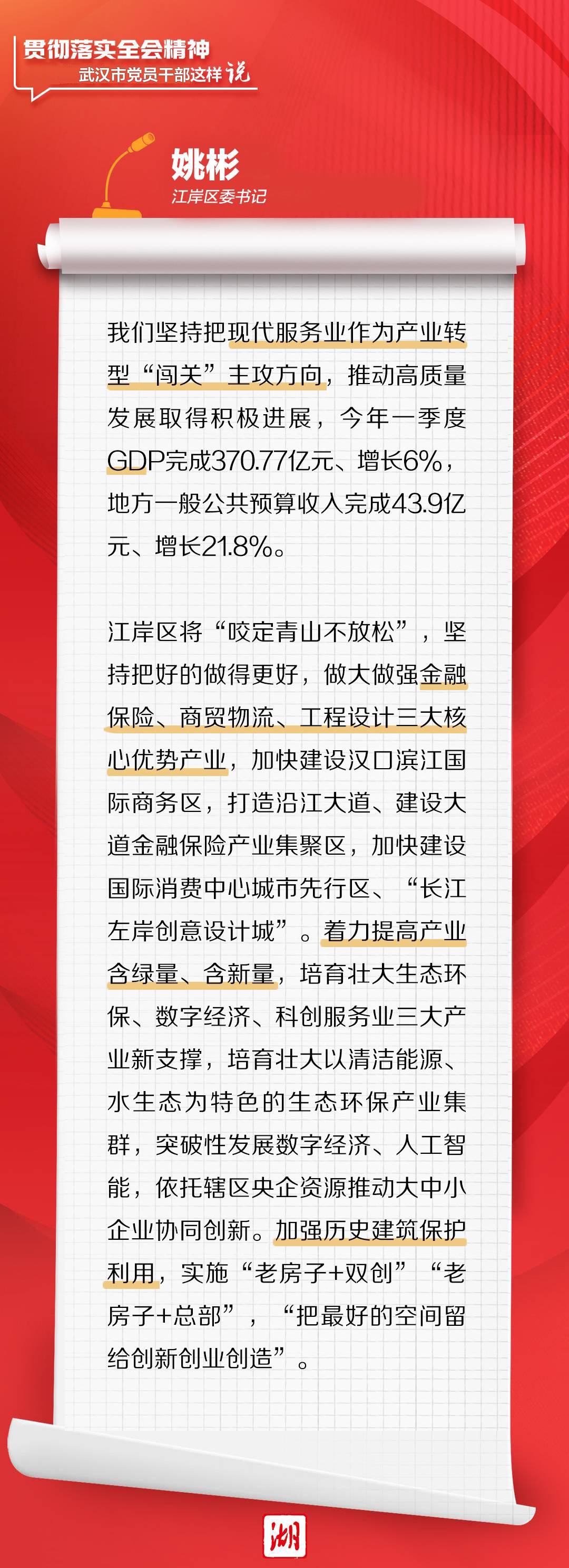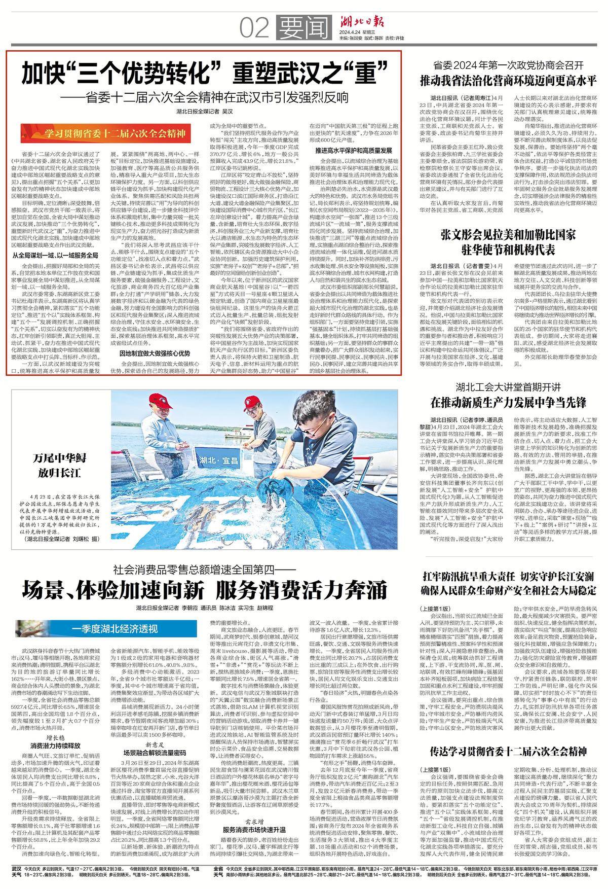 目标明确,定位清晰;深受鼓舞,倍感振奋。武汉市党员干部一致表示,将更加自觉在全国、全省大局中谋划推动武汉发展,加快推动“三个优势转化”,重塑新时代武汉之“重”,为奋力推进中国式现代化湖北实践、加快建成中部地区崛起重要战略支点作出武汉贡献。