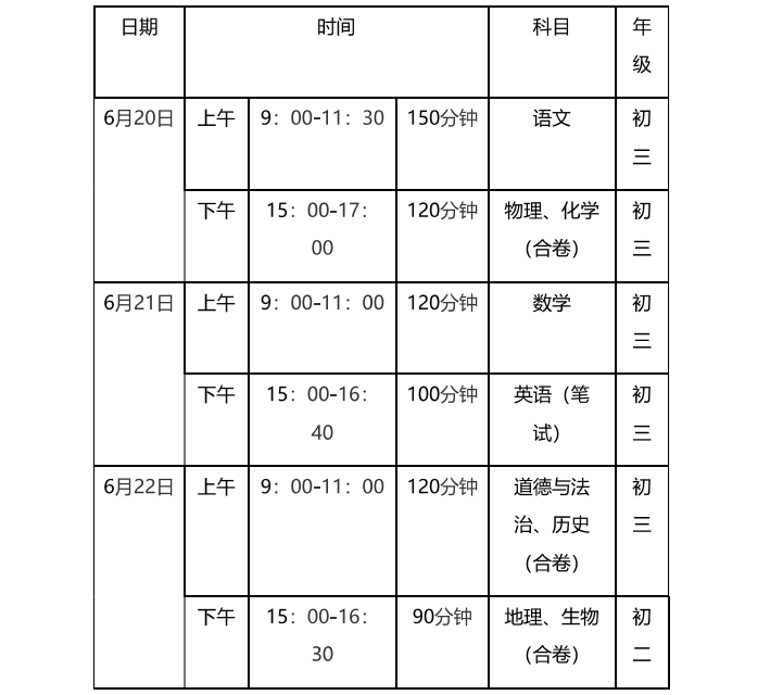2.市级统筹实施的考试(项)科目考试时间由市教育考试院统筹安排。其中,英语听说“一体化”机考原则上在2024年4月中旬进行,物理、化学、生物实验技能操作考试原则上安排在2024年4月下旬进行,体育与健康考试原则上在2024年5月20日前完成。为减轻学生备考负担和组考压力,音乐、美术、信息科技“三科合一”机考,可按“学完即考”的原则组织实施。