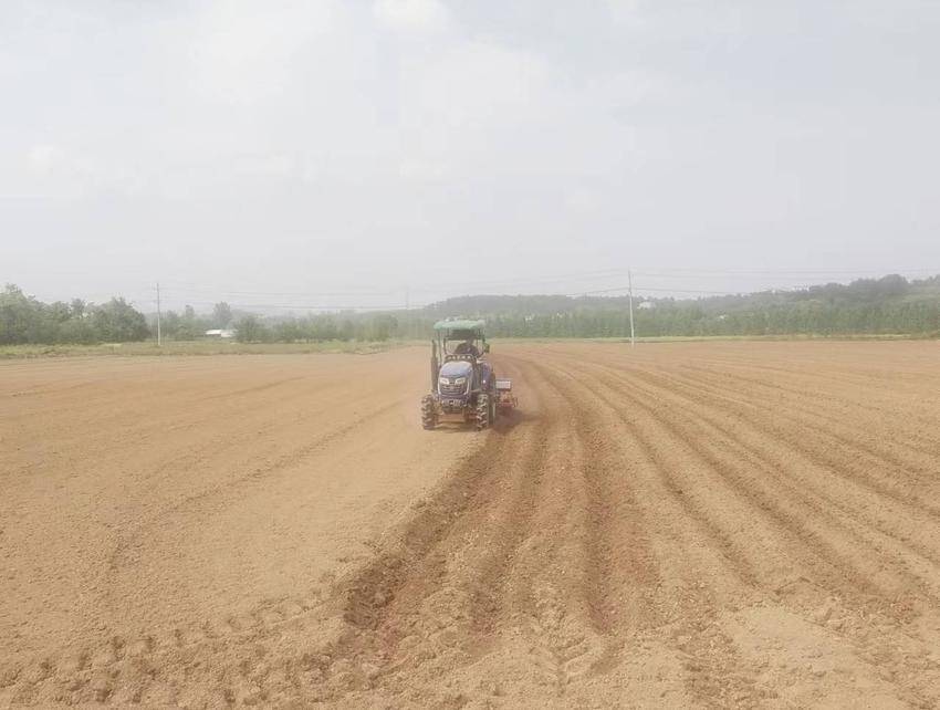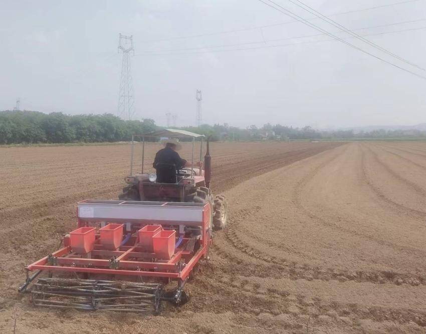湖北日报客户端讯(通讯员 郑可)5月6日,在京山市永兴街道三里村蔬菜种植基地,负责人谭大红正驾驶旋耕播种机穿梭在田间地头,只见他熟练操作机器进行翻耕撒种,一道道车轮印、一个个种穴窝相互映衬,彰显出春夏耕耘的生机活力。