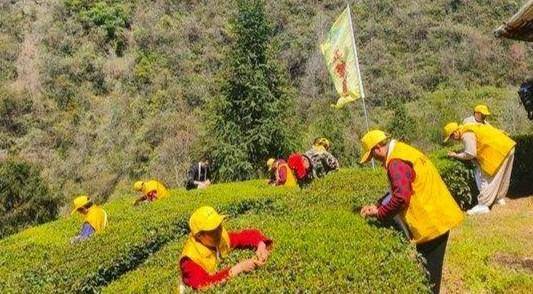 湖北日报客户端讯(通讯员 付亚敏)身着黄色马甲的服务队员们手持采茶器械,穿梭在翠绿的茶园中。随着轰鸣声响起,嫩绿的茶叶也随之落入袋中。茶农们欣喜的笑脸与背篓里新鲜的绿叶绘就了一幅乡村振兴新图景。望着一派丰收景象,谁能想到就在一年前,楠木河村还面临着“无人种茶、无人采茶”的茶园困境呢?