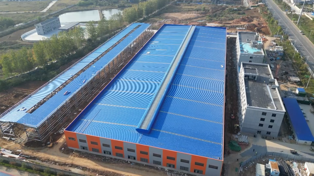4月8日,李店镇食品产业园项目现场一片繁忙,4栋厂房钢结构施工已完成。