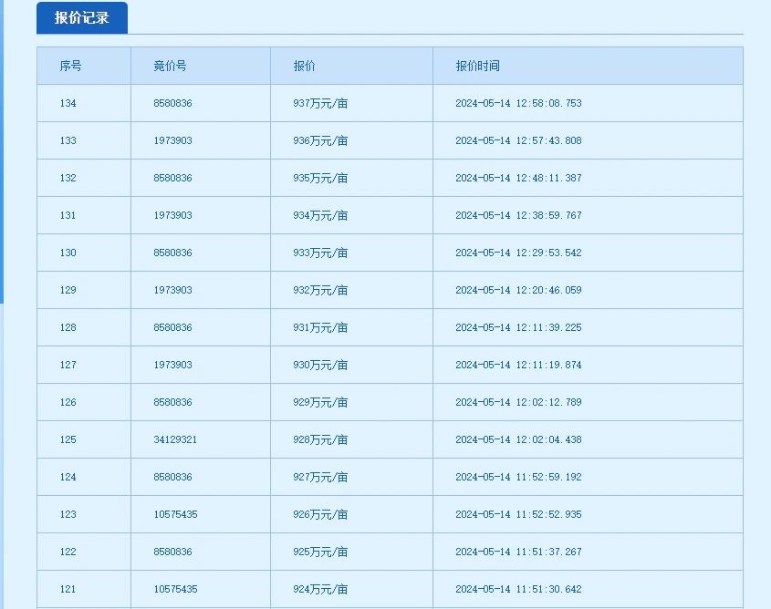 该地块挂牌出让底价为800万元/亩,实际成交价937万/亩(溢价137万/亩、溢价率17%)。