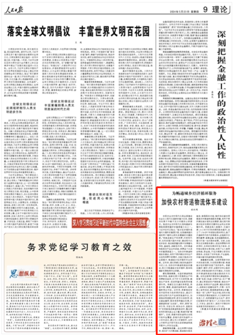 加快农村寄递物流体系建设》