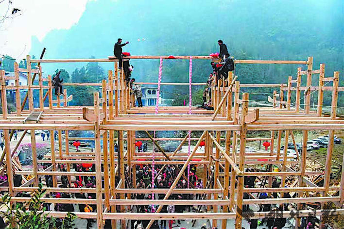 5月18日,湖南省龙山县兴隆街上,一栋五柱四骑的土家吊脚楼拔地而起。这是恩施宇君建设工程有限公司成立以来跨省承建的又一栋土家吊脚楼。