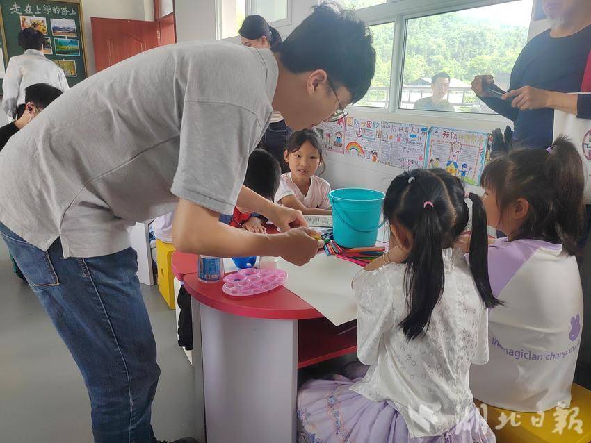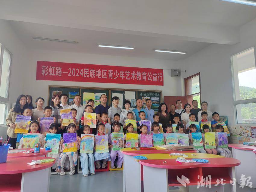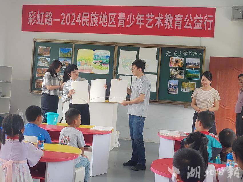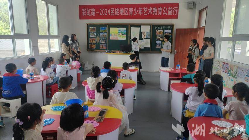 湖北日报客户端讯(通讯员 张万年 陈丽娅)“同学们!闭上眼睛想一想,然后拿起画笔,画出你想画的图案。”5月28日上午,恩施市芭蕉侗族乡黄泥塘小学的孩子们上了一堂别具一格的美术课,这是“彩虹路—2024民族青少年艺术教育公益行”艺术家们首次来到恩施为孩子们授课。