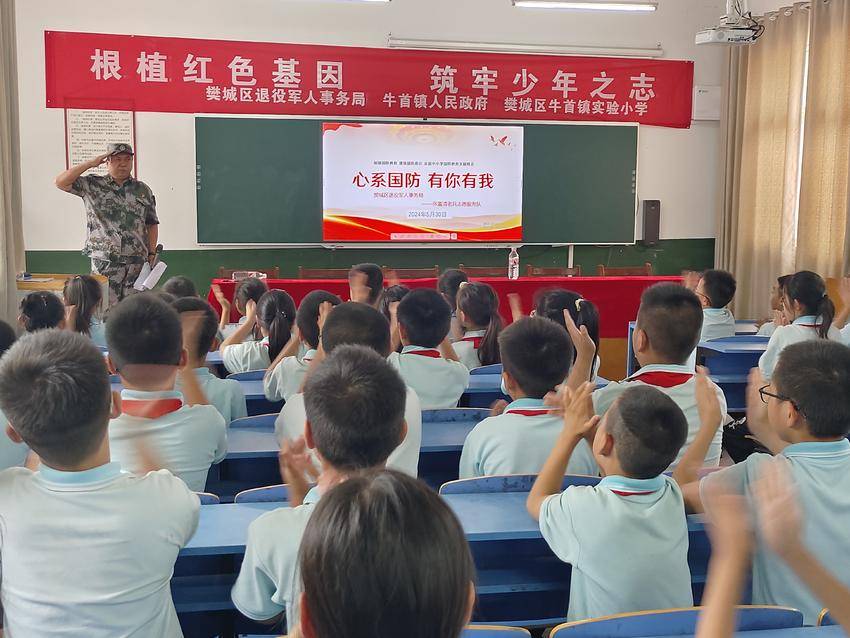 湖北日报客户端讯(通讯员潘冰、廖华兵、张静敏)为充分发挥传统节日在弘扬中华民族优秀传统文化和加强青少年思想道德建设中的载体作用,引导青少年扣好人生第一粒扣子,5月30日下午,樊城区退役军人事务局联合牛首镇人民政府、牛首镇实验小学开展“根植红色基因 筑牢少年之志”庆六一红色宣讲进校园活动。