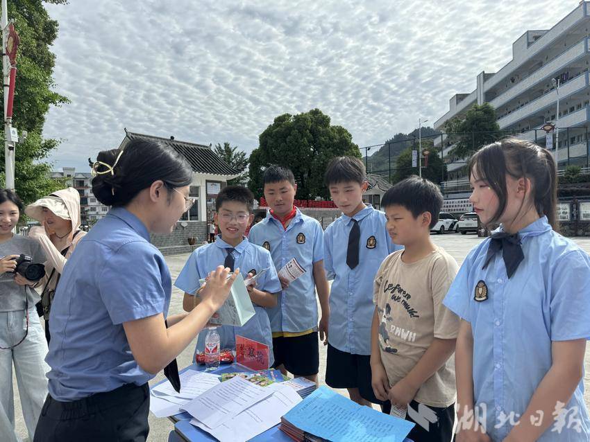 演出前,宣恩县人民检察院,高罗综治中心、司法所、派出所等单位,通过有奖问答、摆摊设点等方式,为1600余名师生送上了防溺水、禁食野生菌、未成年人保护法宣传等法治套餐,守护平安校园。