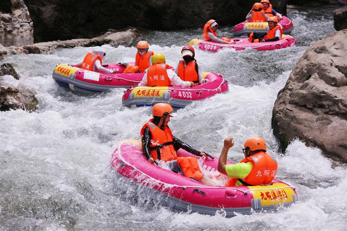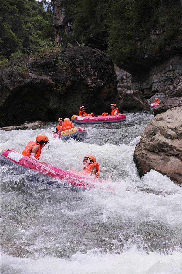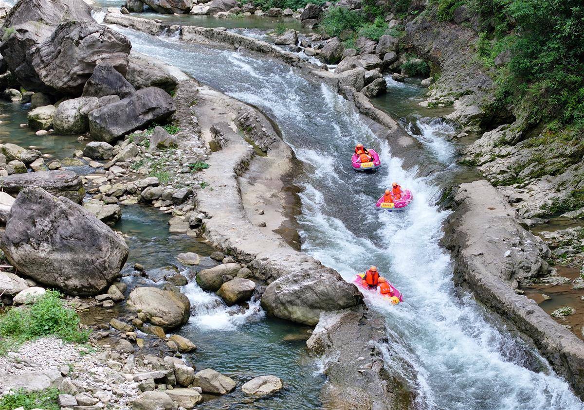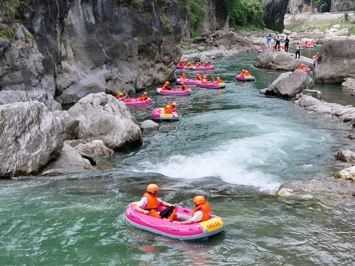 5月31日,宜昌市秭归县九畹溪启动今夏首漂,来自重庆、湖南、武汉等地500多名游客在屈原故里体验“清凉一夏”。