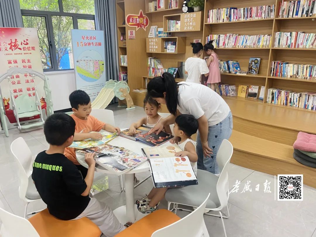 为居民送春联春画,开展雕花剪纸课堂,开展“大手拉小手”“绿书签”护苗行动,开展公益讲堂讲座及技能培训……星火社区农家书屋以新时代文明实践活动为契机,结合志愿服务,开展系列有声有色的文化活动,最多时全年累计开展各类志愿服务活动50多场。