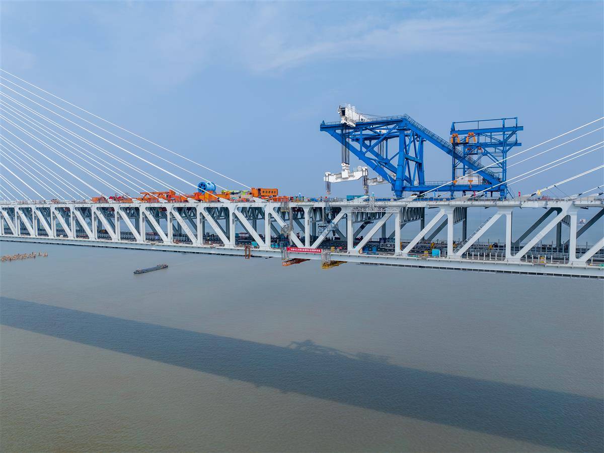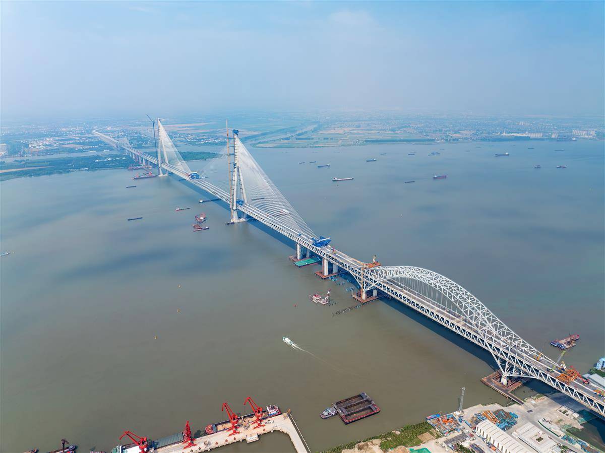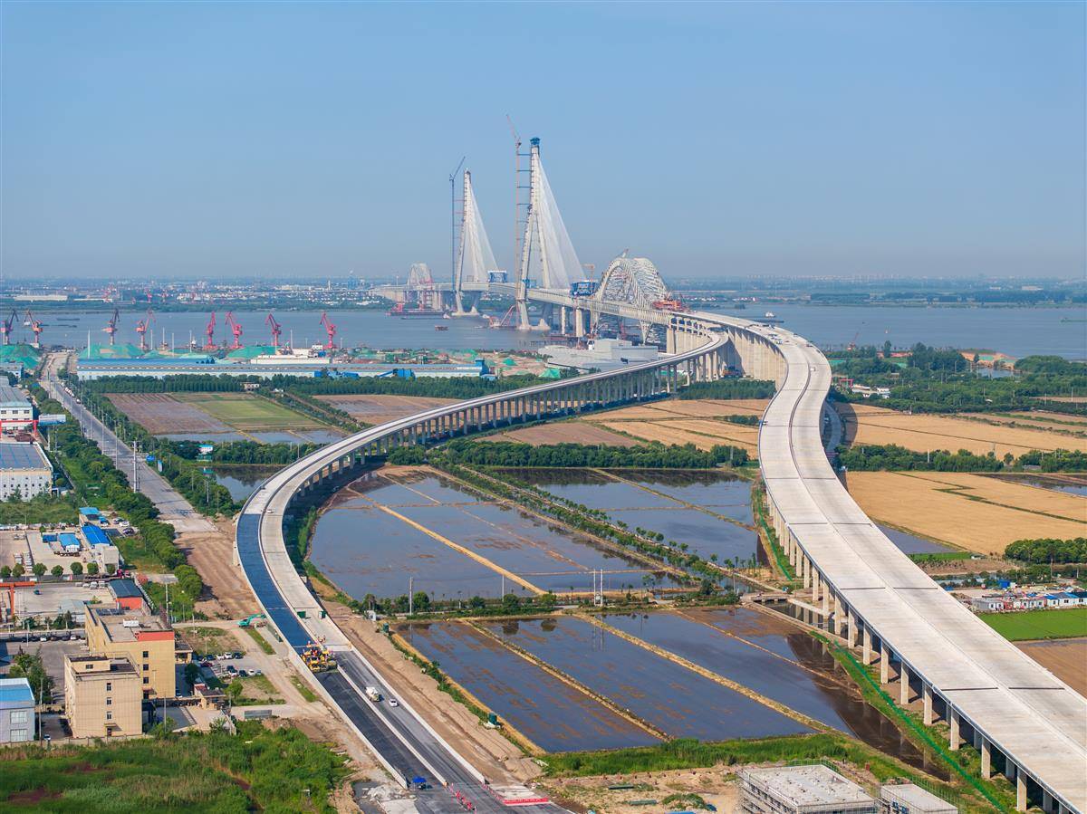 该桥全长10.03公里,连通江苏常州与泰兴两市。为节约长江岸线资源、保护长江生态,兼顾“高速公路、城际铁路、一级公路”过江方式。大桥主航道桥主跨为1208米,为世界最大跨度公铁两用斜拉桥,采用双主桁“N”形钢桁梁,共分为91个大节段,最长达28米,最重梁段达1865.5吨。中交建设团队创造了多项我国乃至世界“第一”和“之最”纪录。