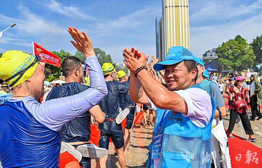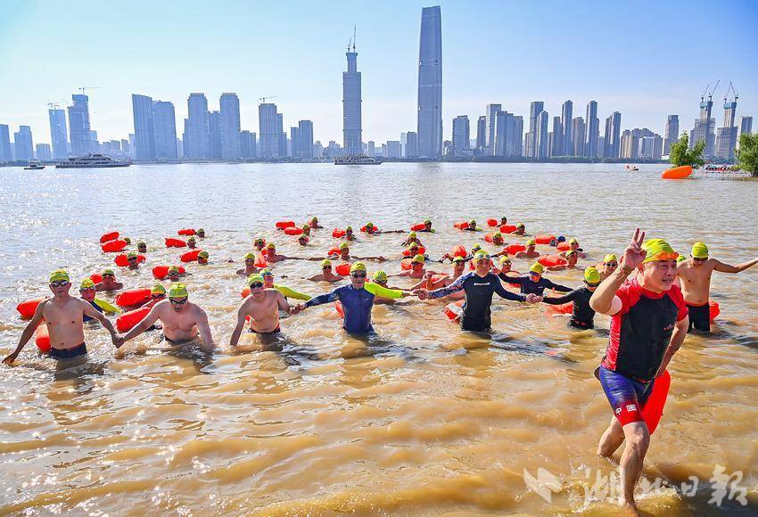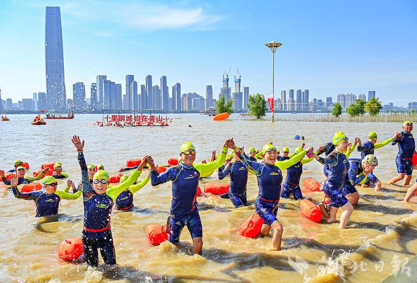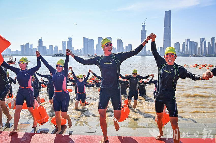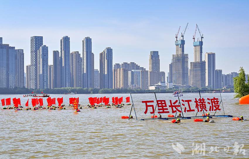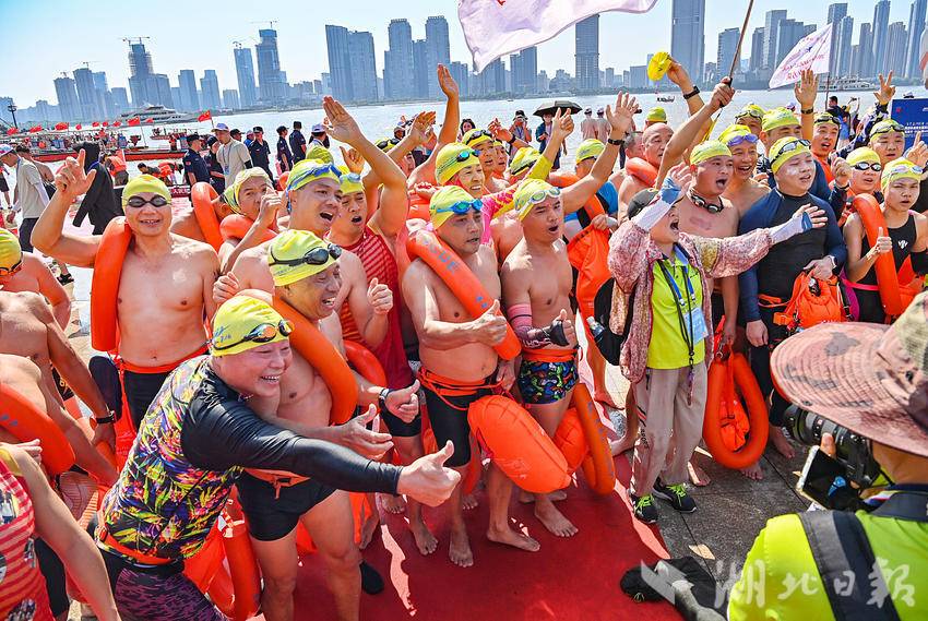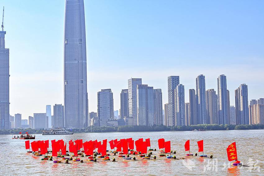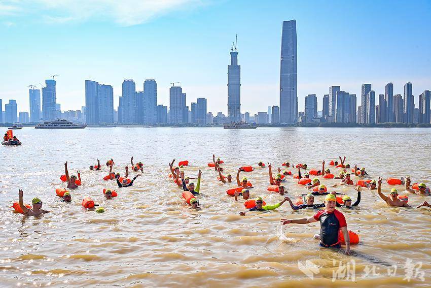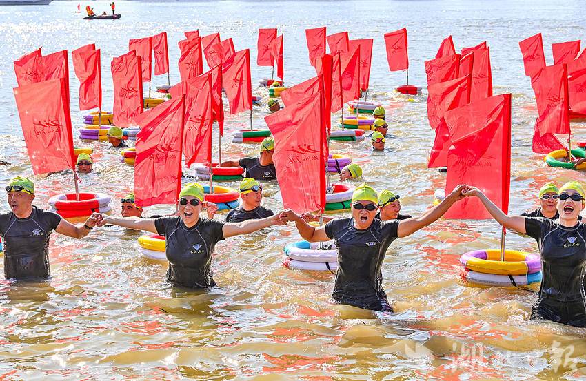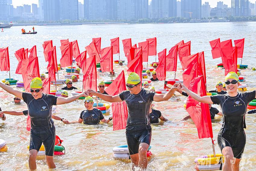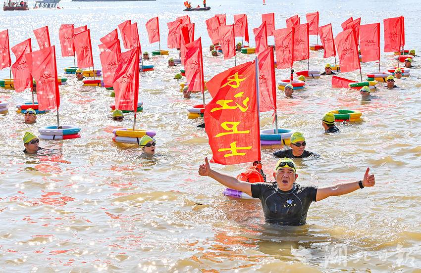 武汉渡江节是全国公开水域唯一的、历史最悠久的群众性公开水域游泳赛事活动,受到来自世界各地游泳爱好者青睐。(湖北日报全媒记者朱熙勇摄)