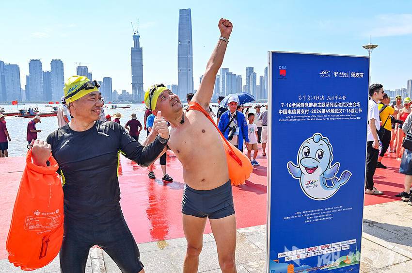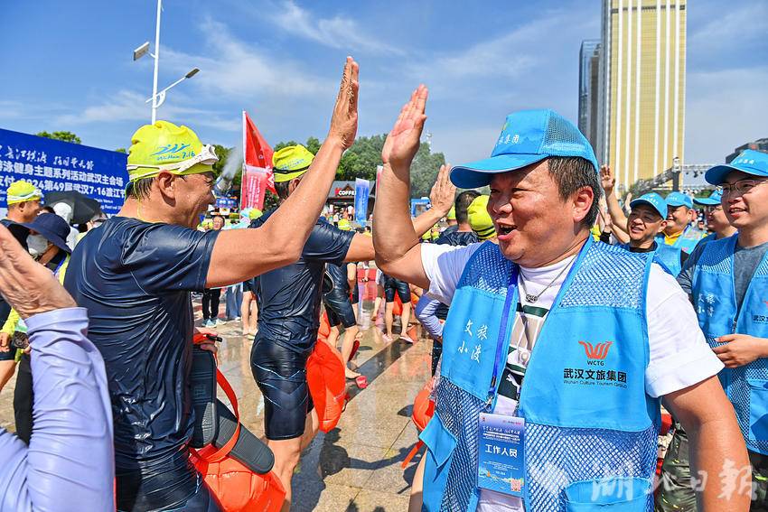 当日,2024第49届武汉7·16渡江节在武汉市武昌区鸣枪开赛,千余名运动健儿气宇轩昂乘风破浪,浩浩荡荡横渡长江;两江四岸观众云集,岸边的工作人员与观众响起热烈掌声。本届渡江节旨在传承与弘扬武汉渡江精神与渡江文化,并庆祝第16个国家全民健身日。