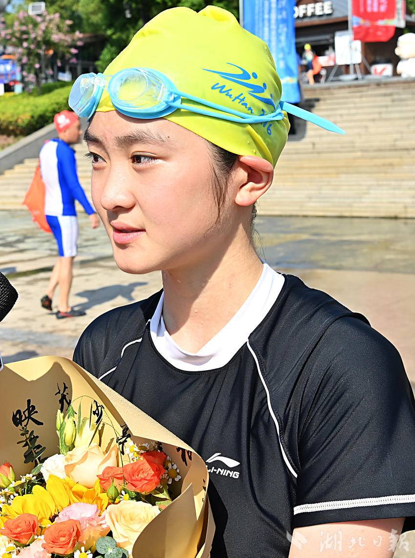 8月8日上午,抵达汉口江滩三阳广场的群众横渡方队队员江雨涵,她是一名14岁的初中生。