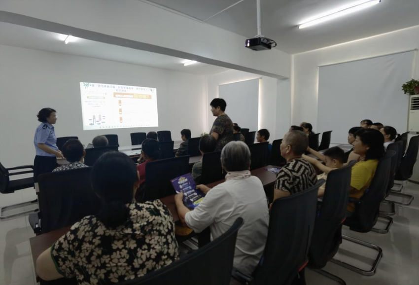 讲座中,社区民警郭警官从诈骗的概念及法律规定、常见诈骗行为及应对措施、如何防范养老诈骗等多个方面进行了详细讲解。郭警官以案说法,结合真实的诈骗案例,深入浅出地剖析了诈骗分子的作案手法和心理特征,让老年居民对诈骗行为有了更直观的认识。同时,也结合老年人的实际情况,用通俗易懂的语言为老年居民讲解了“中奖诈骗”“保健品诈骗”等常见的诈骗类型和诈骗手段。郭警官通过生动的讲解和互动问答,让老年居民在轻松愉快的氛围中掌握了防范诈骗的实用技巧。