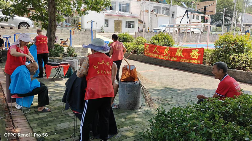 活动当天,志愿者们早早地来到二组居民休闲文化广场,布置好理发工具,准备迎接老年居民的到来。他们中既有经验丰富的理发师,也有自学成才的理发爱好者。每一位志愿者都耐心细致地为老人修剪头发,根据老人的需求和喜好,设计出既符合年龄气质又易于打理的发型。在理发的过程中,志愿者们还与老人们亲切交谈,询问他们的身体状况和生活情况,让老人们在享受服务的同时,也感受到了来自社会的关爱和温暖。