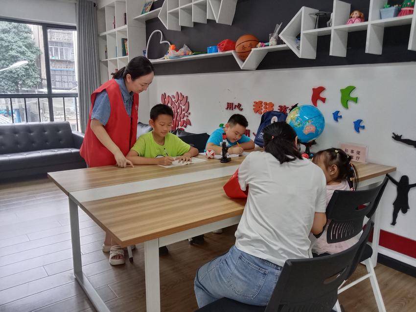 中山巷社区双职工家庭较多,留守儿童也有一小部分,为此,社区工作人员和志愿者决定在开学前一周开展爱心辅导作业的志愿服务活动。每天早上8点,有作业辅导需求的家长可以把孩子送到社区,由社区志愿者为孩子们进行一对一的课业帮扶辅导。