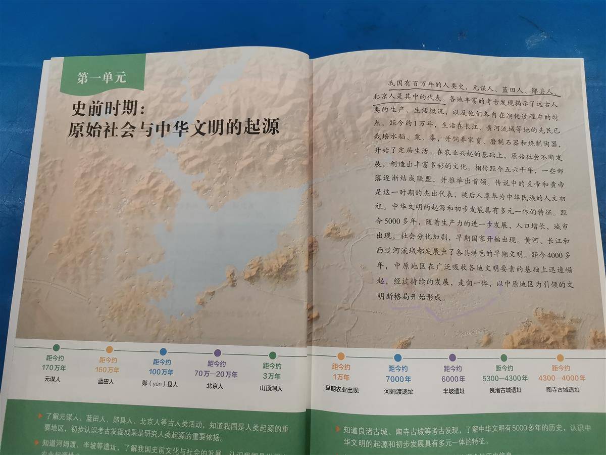 杨阳说,此次新版教材,内容与时俱进,体现史学研究新成果,体现“中华文明探源工程”的研究成果等。如,第一课改名为“远古时期的人类活动”,增加蓝田人和郧县人,丰富我国百年人类史;介绍古DNA技术研究人类起源等内容。充分发挥教材落实立德树人根本任务的作用,增加“学史崇德”,涉及屈原的忧国忧民精神、诸葛亮“鞠躬尽瘁,死而后已”的奉献精神等,通过介绍杰出历史人物的言行,使学生明理修德。同时,兼顾教本与学本,注重学习方法的引导,如增加时间轴、学史方法等。