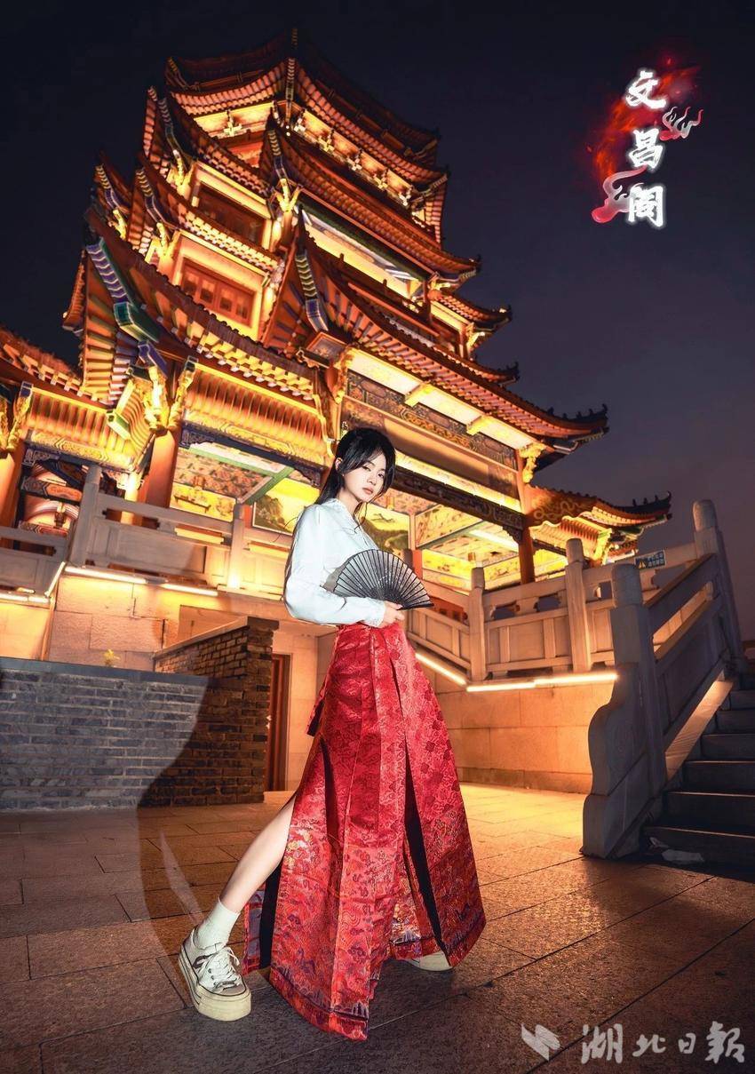 如海般静谧深沉的夜空下,文昌阁好像除圆月外唯一的发光体,碧瓦朱檐、高大耸立,无言自成诗。