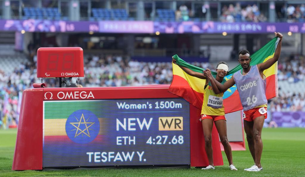 在2日的巴黎残奥会田径女子1500米T11级决赛中,亚耶什·盖特·特斯法夫以4分27秒68的成绩获得冠军并打破世界纪录,为埃塞俄比亚代表团赢得了本届残奥会第二枚金牌。何珊珊以4分32秒82的成绩获得亚军。