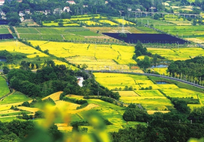 湖北日报客户端讯(通讯员王代金 王鹏)九月是丰收的时节,九月是金秋的色彩。登临安陆白兆山,俯瞰山下烟店大地,一块块田野如油画般美丽,成熟的稻子呈现出金黄的色彩;加之阡陌交通纵横交错,民房农居点缀其间,共同构成一幅色彩斑斓的画卷。
