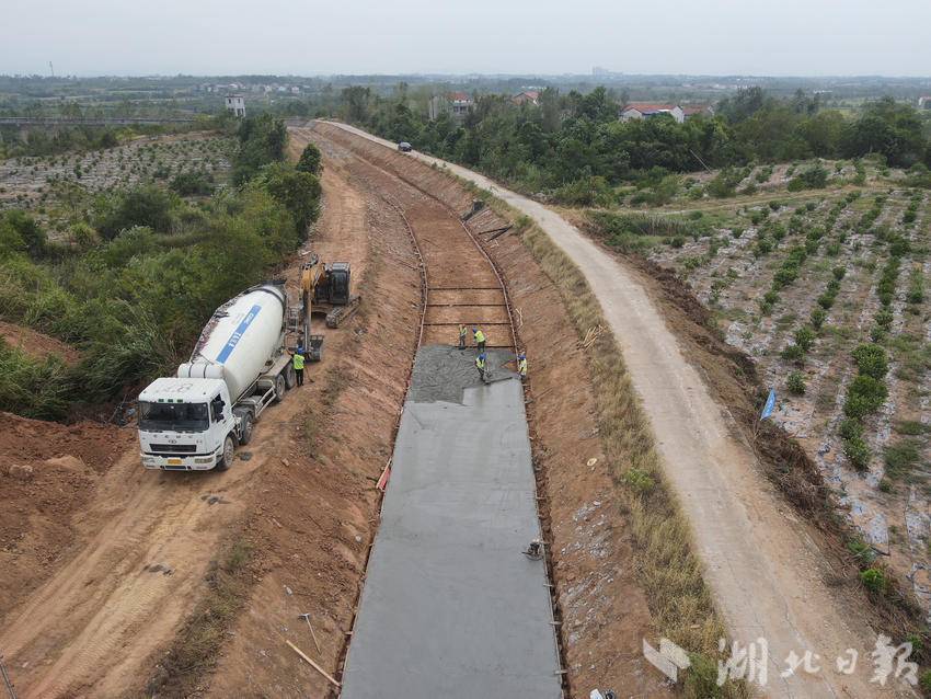 “我们现在正在推进的是叶家里泵站和主干渠及支渠浇筑工程。面对当前持续酷热高温天气,项目部购置了一批防暑降温物资,在确保人员安全和工程质量的前提下,有序组织工人错峰施工,全力推进项目建设,确保按工期节点顺利完成任务。”新洲区举水灌区续建配套与现代化改造第一标段现场负责人许乾坤介绍。