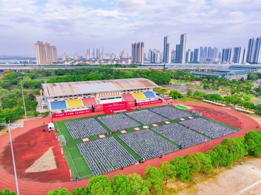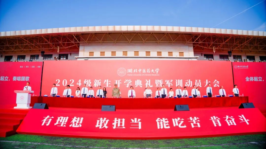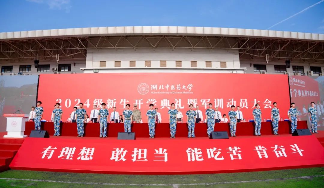 9月17日,黄家湖校区体育场,湖北中医药大学2024级新生开学典礼暨军训动员大会盛大举行,4963名本科生、研究生新生
