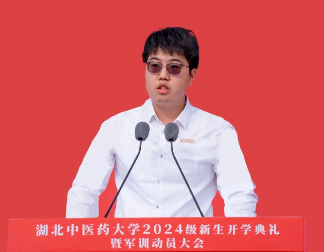 国家级大学生创新训练项目负责人、SCI论文发表者、中医学院2024级博士研究生刘尚志作为研究生新生代表,表达了对学校及中医药事业的无限热爱和坚定信念。