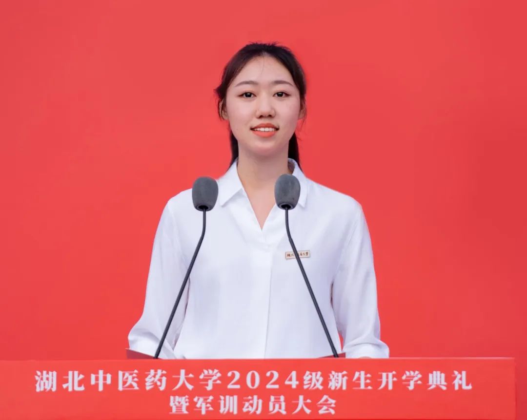 中医学院2024级中医学阚睿睿作为本科生新生代表发言,以“三个问题”表达了对杏林生活的思考与憧憬。