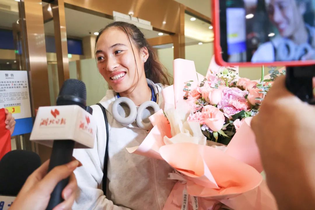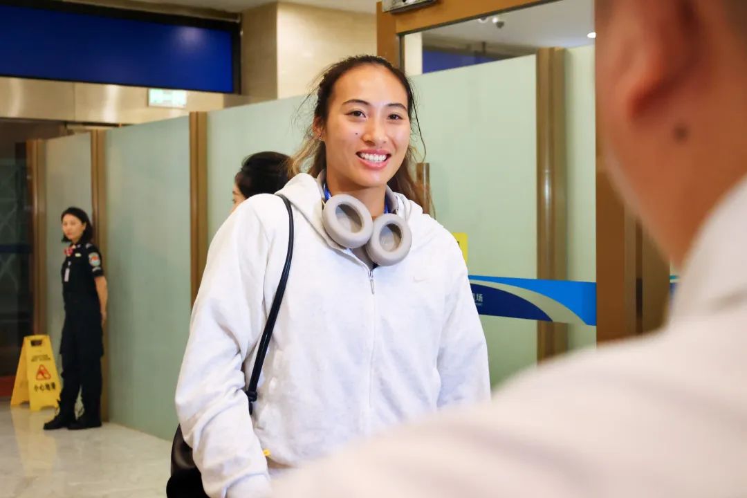 挂在机场休息室,郑钦文激动地说