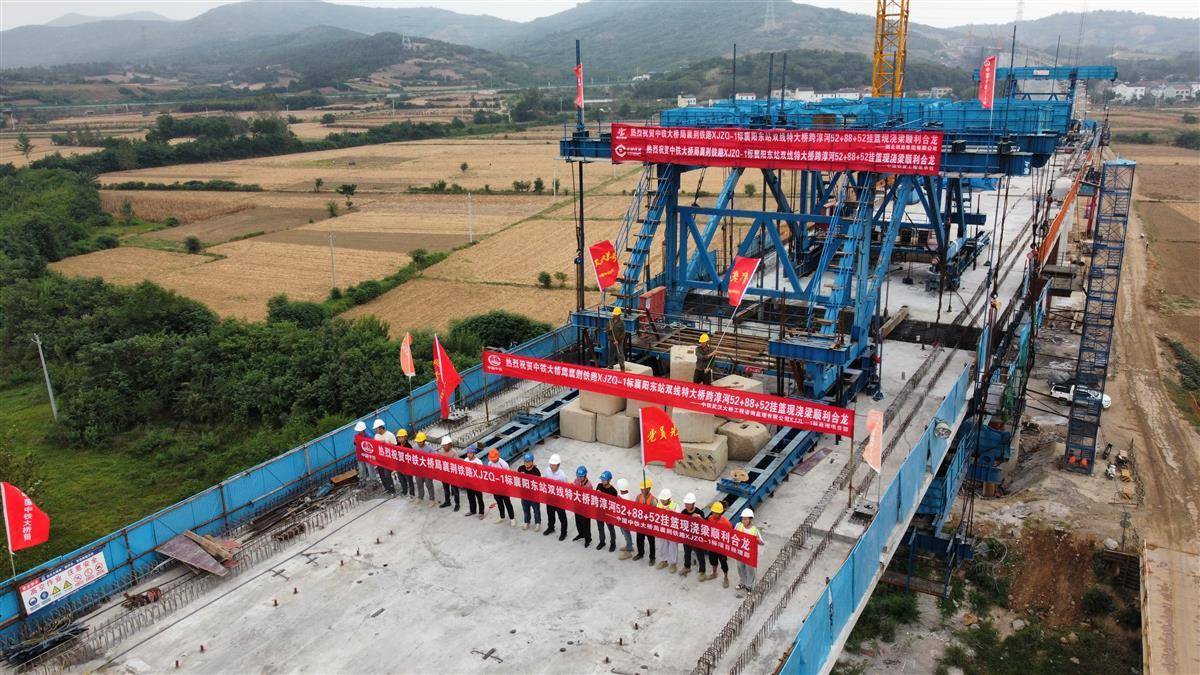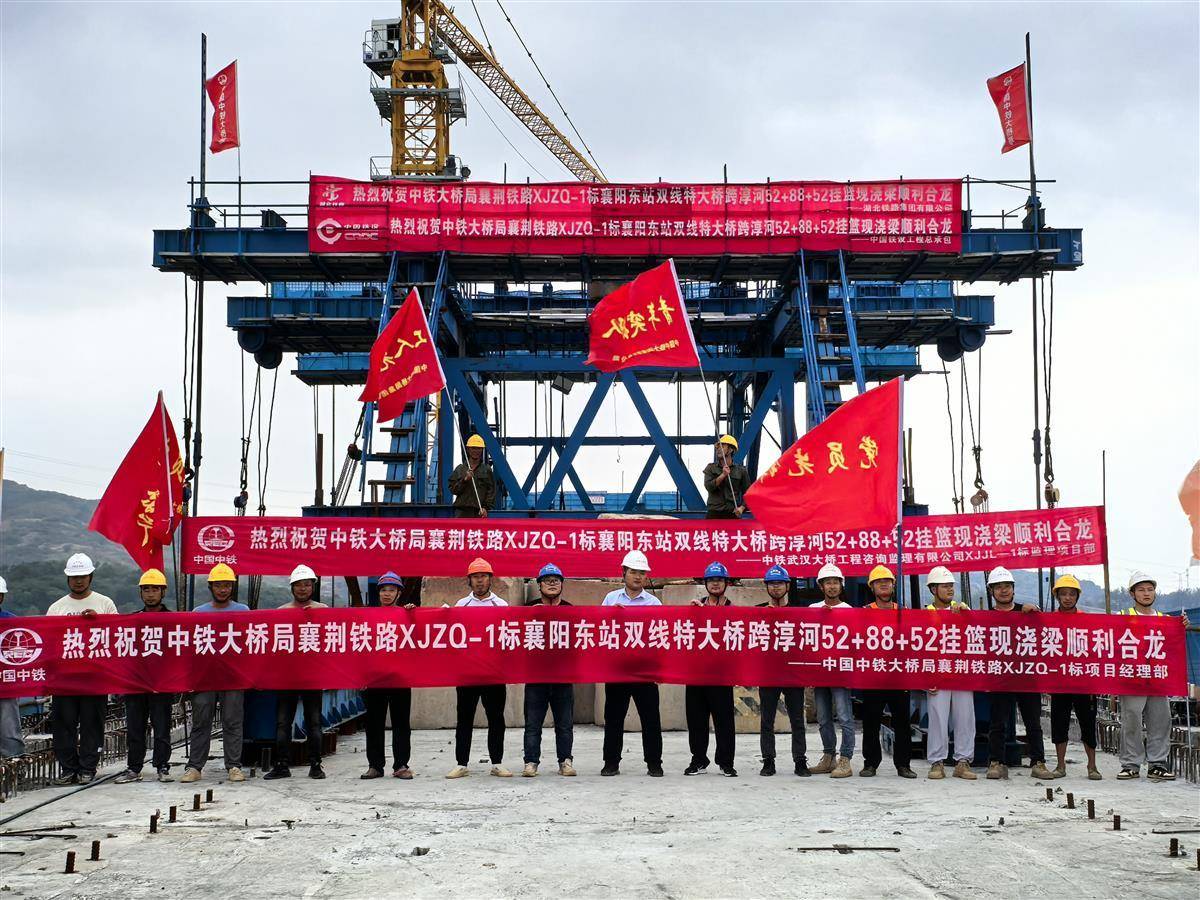 湖北日报讯(通讯员程金鹏、马春龙)9月19日,中铁大桥局集团承建的襄荆铁路1标襄阳东站双线特大桥跨淳河连续梁顺利合龙。