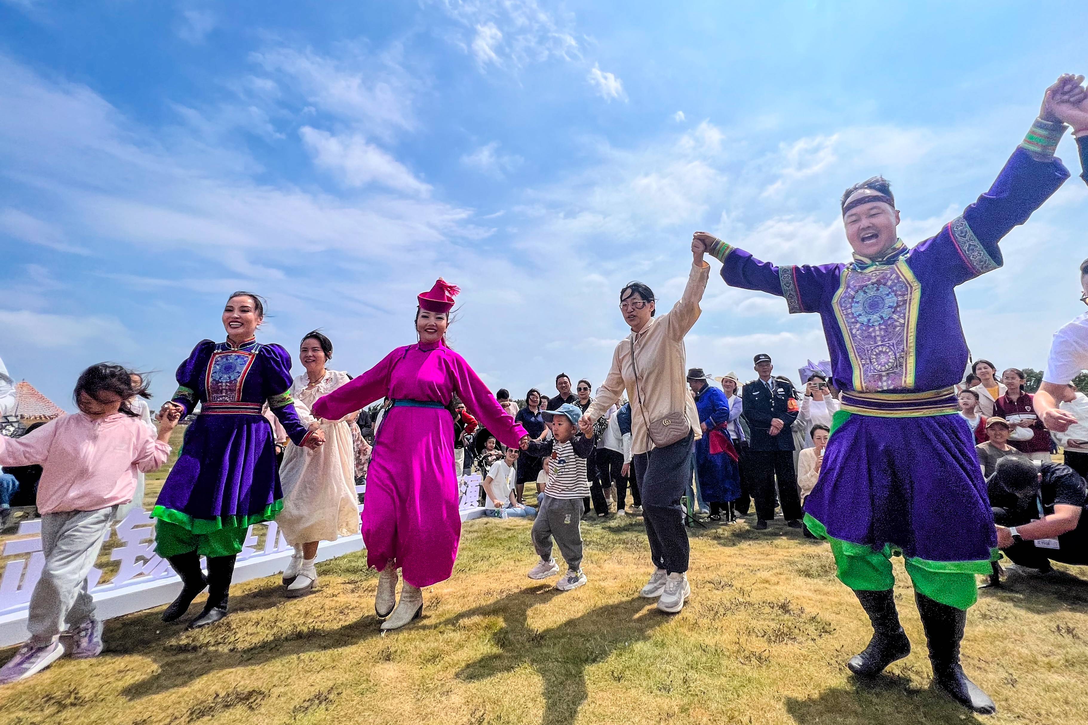 图为游客与来自内蒙古的演员们一起载歌载舞。(湖北日报全媒记者 倪娜 通讯员 黄宣 段亚洁 摄)