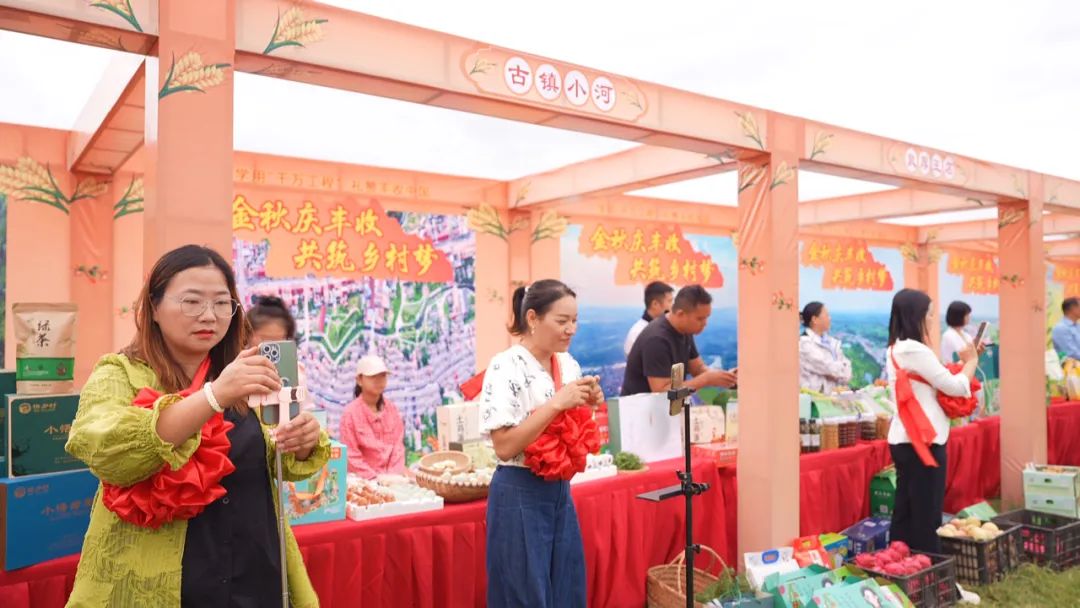 活动现场设置了农产品展销区、农机展示区、农耕农具体验区等板块。14个乡镇区的特色农产品展销台前,人流如织,气氛火爆。电商助农大赛中获奖的主播们在直播间各显身手,向网友推介家乡优质农产品。
