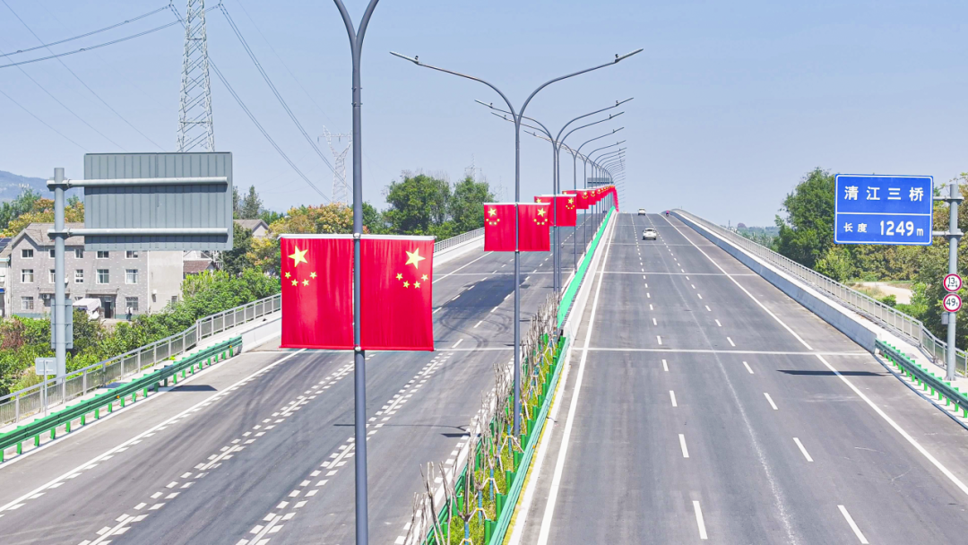 主次干道部分路段,清江三桥沿线、公园广场灯杆悬挂国旗