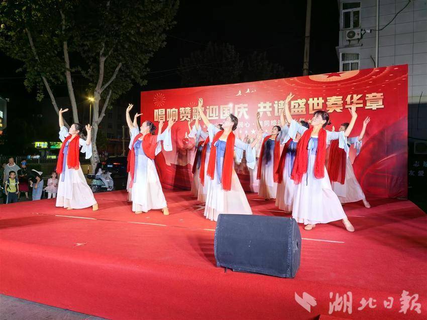 湖北日报讯(通讯员钟维娜、李苑茜)9月24日晚,武汉市武昌区中南路街道傅家坡社区开展“唱响赞歌迎国庆,共谱盛世奏华章”文艺汇演活动,歌曲、舞蹈等节目中穿插互动问答,让居民们既收获快乐又增长了知识。