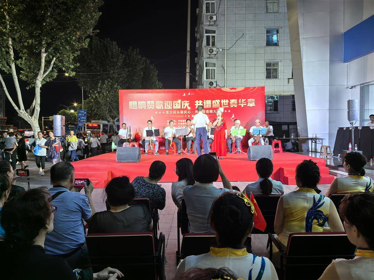 “金色年华管乐团”演奏开场曲《迎宾曲》,悠扬的旋律瞬间点燃了现场的热情。“楚天舞韵舞蹈队”带来舞蹈《黄河水从我家门前过》,以灵动的舞姿和深情的演绎,将观众带入了黄河儿女的日常生活。多位居民登台献艺,其中蔡丽的独唱《我爱你中国》尤为动人,她用清澈的歌声表达了对祖国深沉的爱。最激动人心的是大合唱《歌唱祖国》,在全体人员共同演绎下,歌声响彻云霄,表达了居民们对祖国最真挚的祝福与热爱。