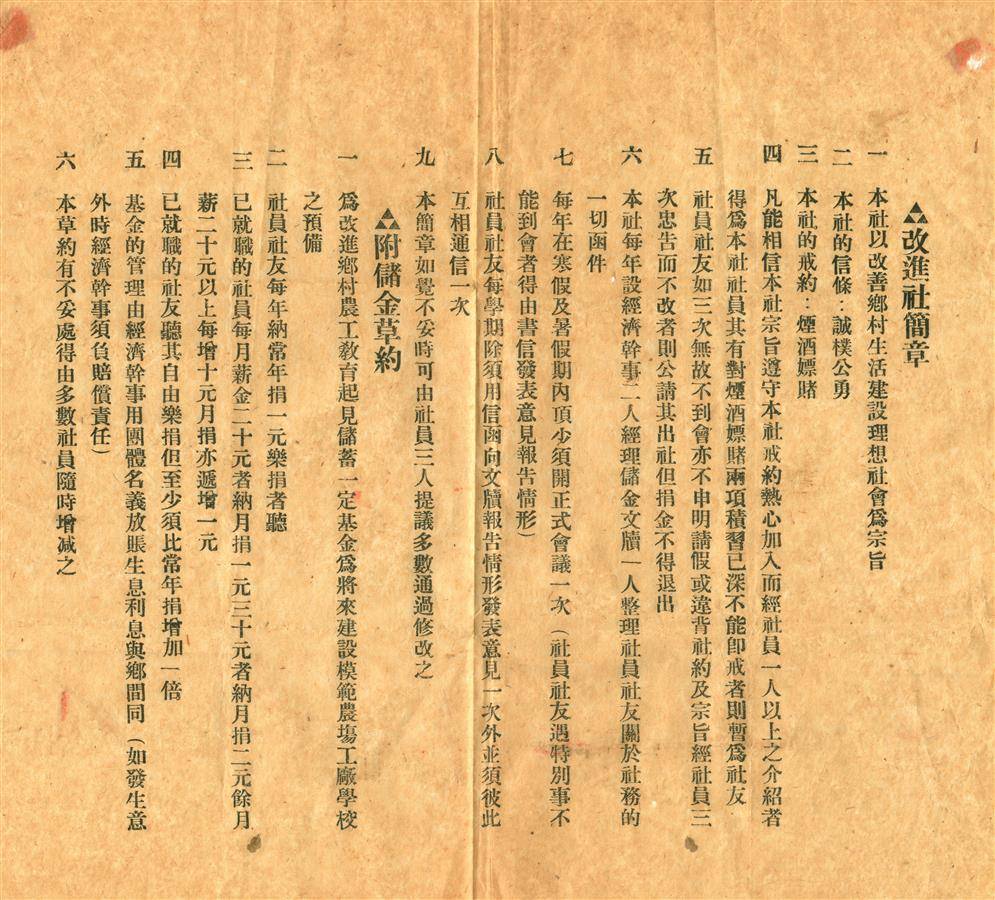 《改进社简章》明确,本社以改善乡村生活、建设理想社会为宗旨。