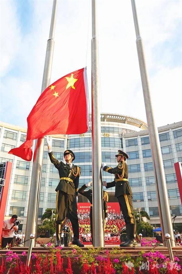 湖北日报讯(记者张歆、通讯员卓张鹏、黄艳)9月30日,中南财经政法大学中原楼广场前,伴随着雄壮激昂的《义勇军进行曲》,五星红旗冉冉升起,随风飘扬。当日,该校举行“国旗故事会”主题教育活动暨庆祝新中国成立75周年升国旗仪式,向祖国母亲深情告白宣誓。