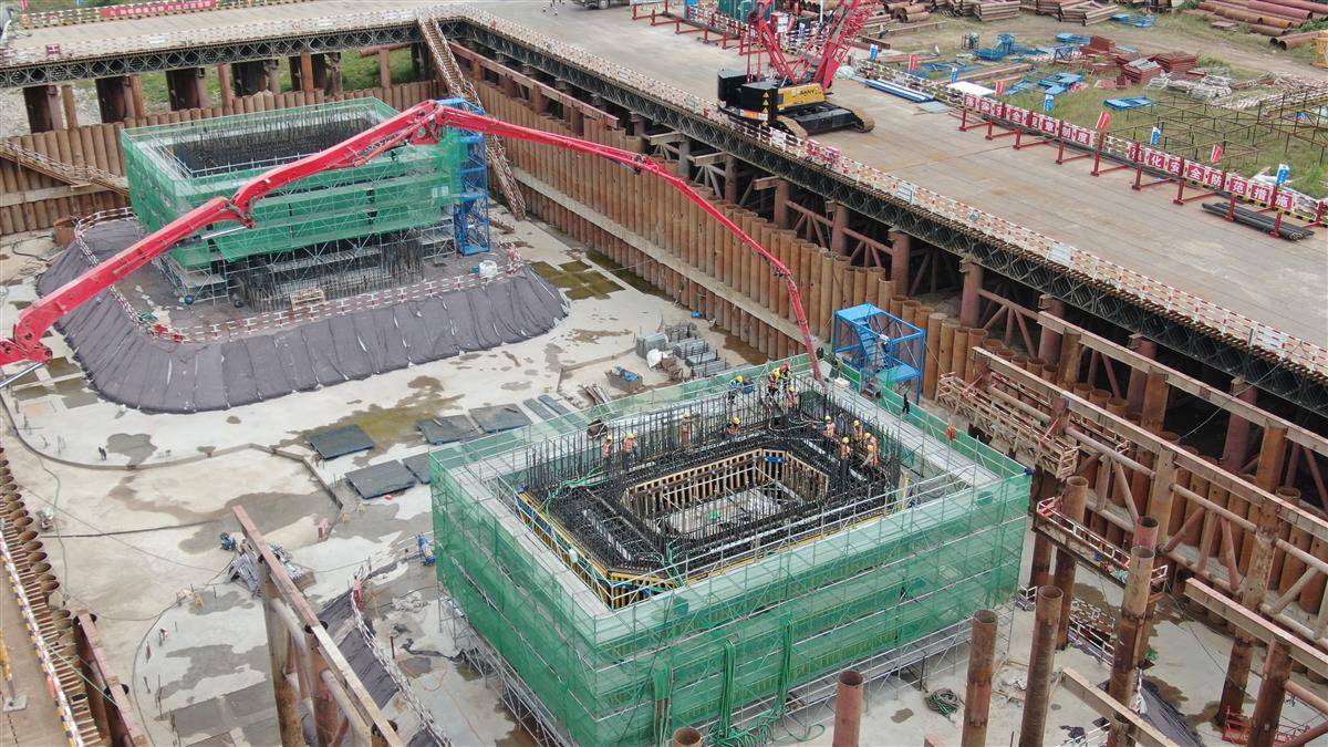 10月2日,世界最大跨度公铁双层斜拉悬索协作体系桥——荆州李埠长江公铁大桥4号主塔欢声一片,首节标准段施工完成,标志着大桥迈入“节节拔高”阶段。不远处,世界最大跨径公路斜拉桥——观音寺长江大桥北岸,由中国铁建大桥局承建的边跨混凝土梁首节钢筋部品吊装到位。