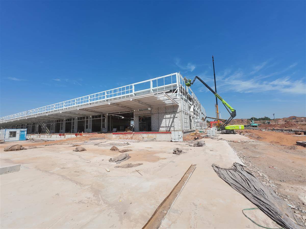 10月2日上午,走进鄂州空港综合保税区多功能物流仓储中心(以下简称“仓储中心”)建设工地,电焊声、混凝土浇筑声、钢结构拼装敲击声、混凝土罐车倒车提示声,各种声音此起彼伏,争分夺秒。