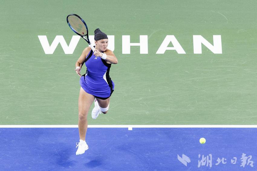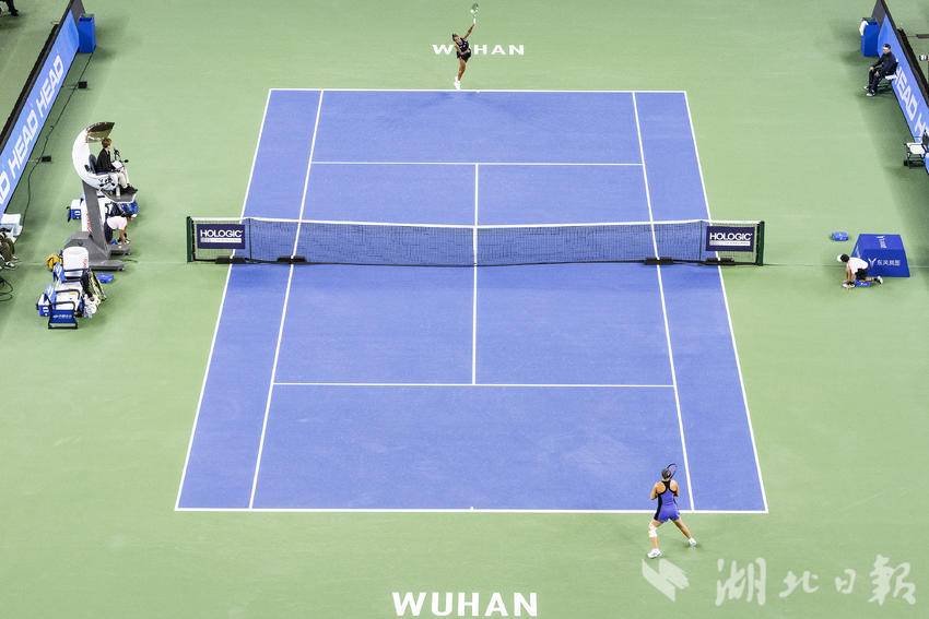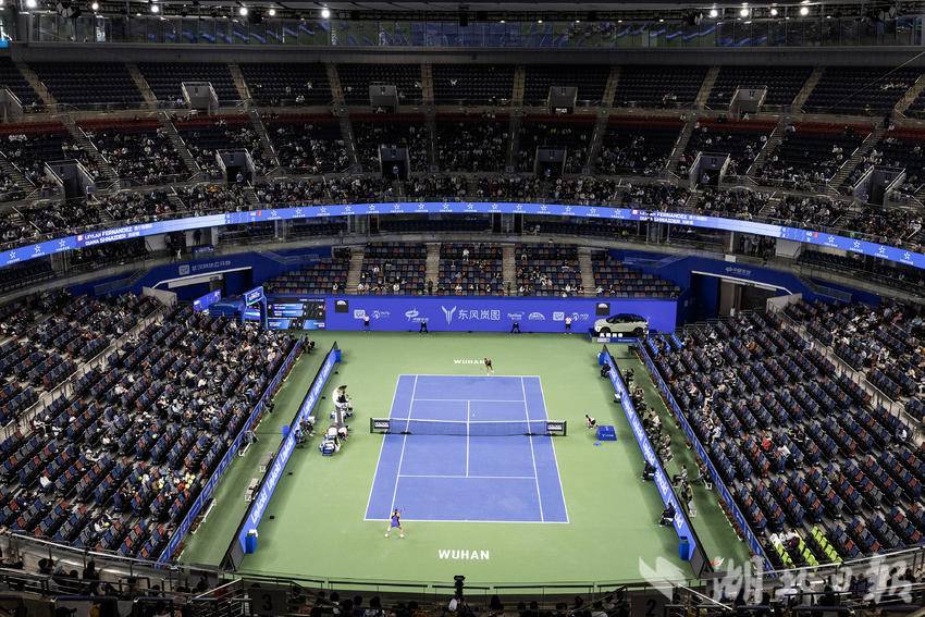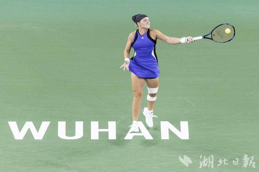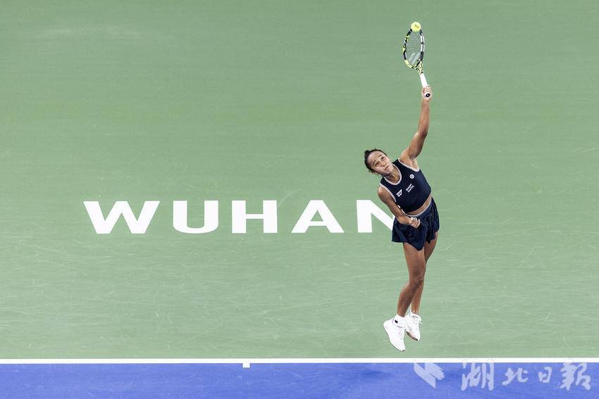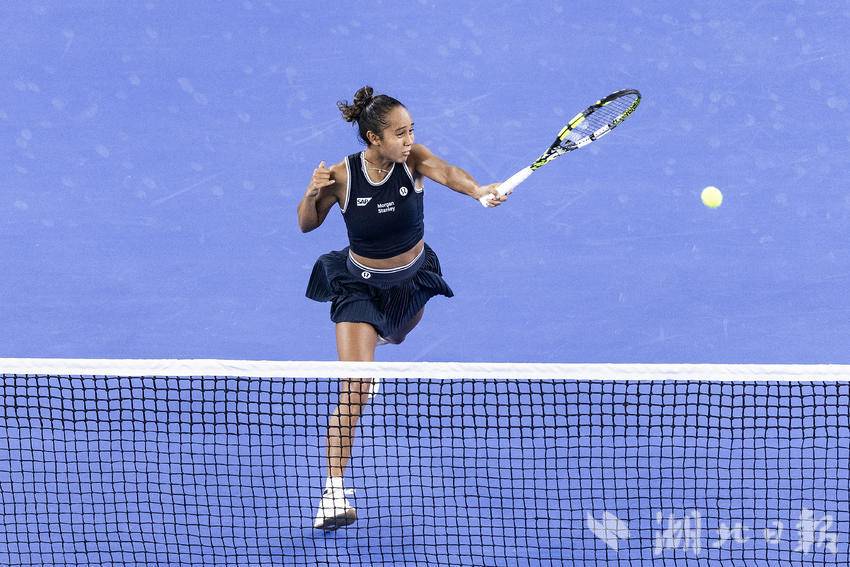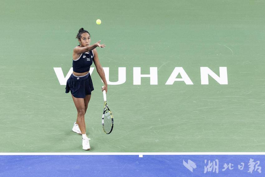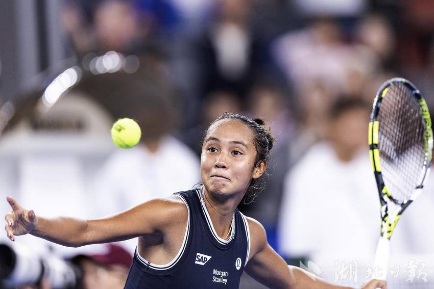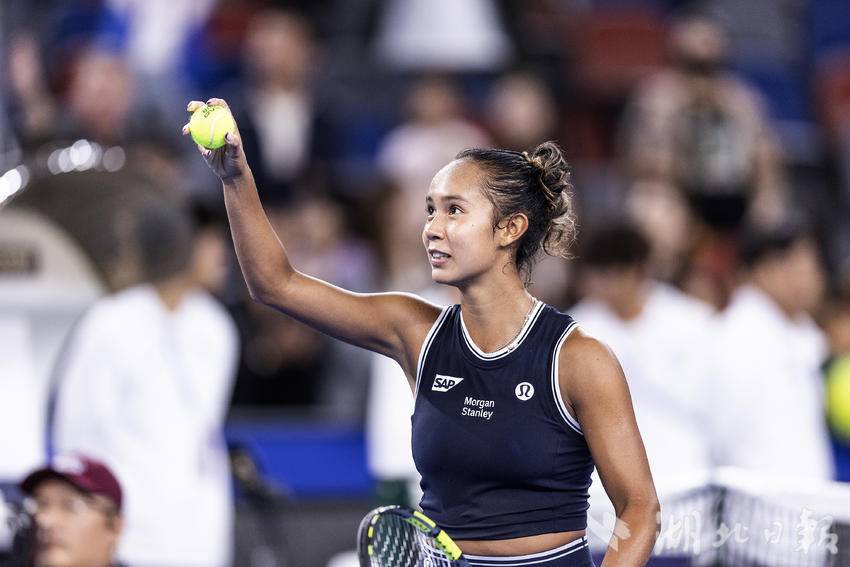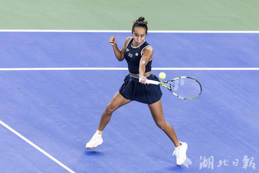 10月7日,2024武汉网球公开赛女子单打比赛首轮,加拿大选手费尔南德斯迎战施耐德,最终,在6-7先丢一盘的情况下,费尔南德斯6-3、6-3连扳两盘逆转施耐德,晋级女单下轮。(湖北日报全媒记者 任勇 摄)
