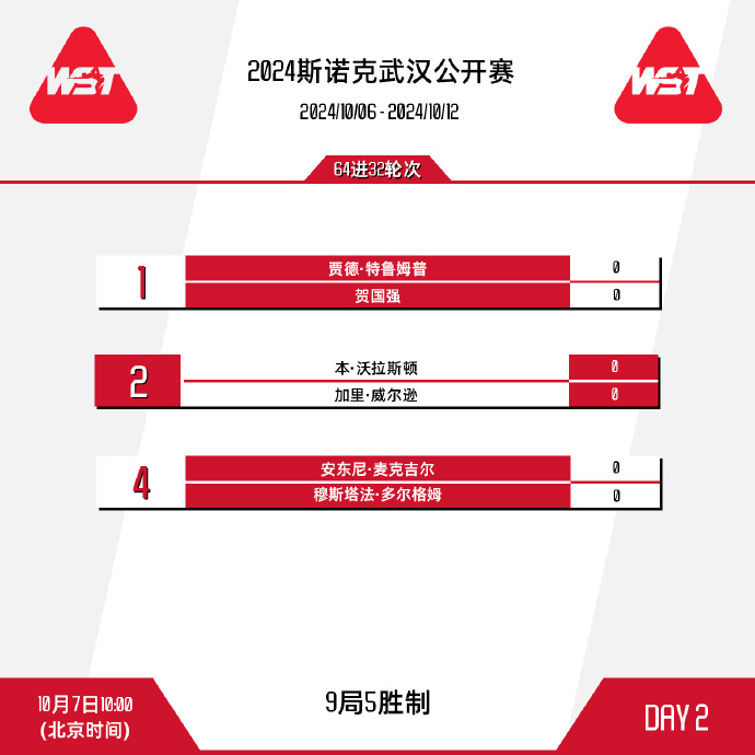 中国台球协会副主席赵力平表示,武汉公开赛连续两年举办,让人们欣喜地看到斯诺克和武汉这座热爱运动、文化底蕴深厚的城市结下了更深的缘分。世界斯诺克有限公司首席执行官西蒙·布朗内尔表示,对于所有球员和官员来说,这会是激动人心的一周,第二次拜访富有魅力的武汉,他们进一步了解了武汉的历史和文化。昨日(10月6日)白天已举行13场比赛,其中,现世界排名第一的英国选手特鲁姆普登场1号台,对战安东尼·科瓦尔斯基,他也是第一届武汉公开赛冠军。