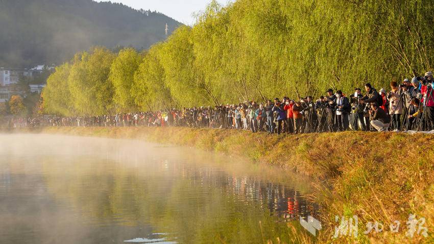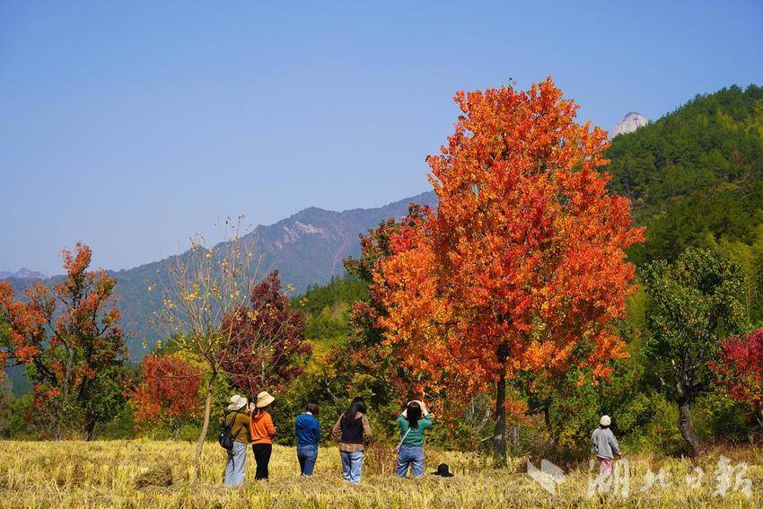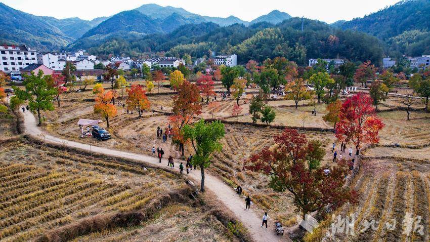 河西畈村水中的乌桕树形成了惊艳的 “水上红叶”,叶子五彩斑斓地倒映在水中,置身于此等自然美景中,自能感受到醉人的意韵。