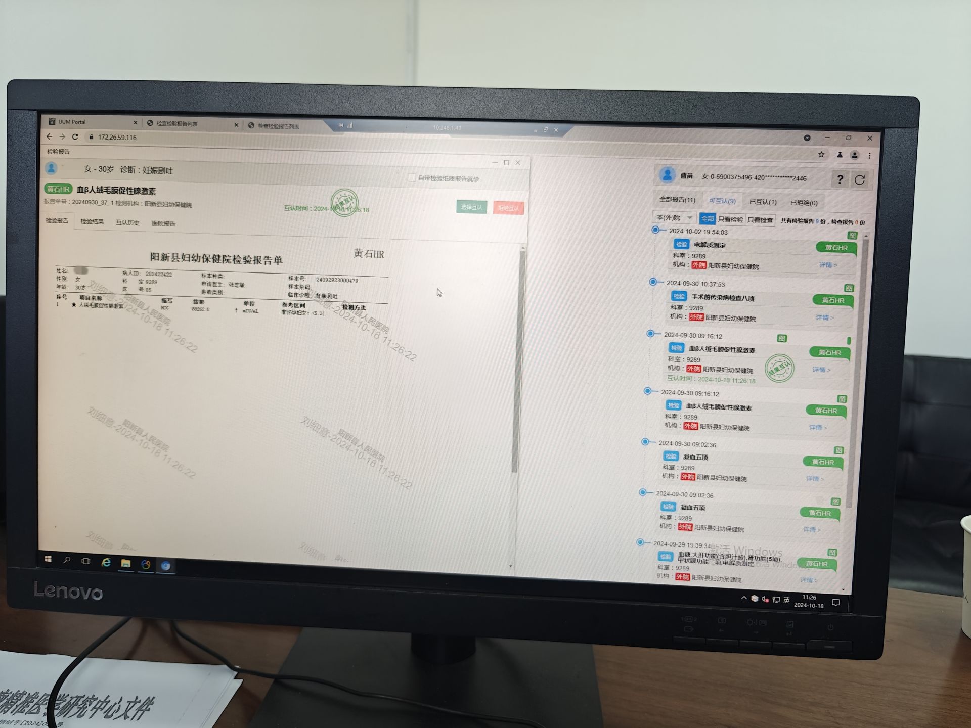近日,在阳新县人民医院,患者看病开具检查检验申请单时,如果有近期相同检查检验项目,信息平台就会显示患者在其他医疗机构的检验结果,供医生选择是否互认。选择互认即可查看原始资料,免去了患者重复检查和多次跑腿的困扰。