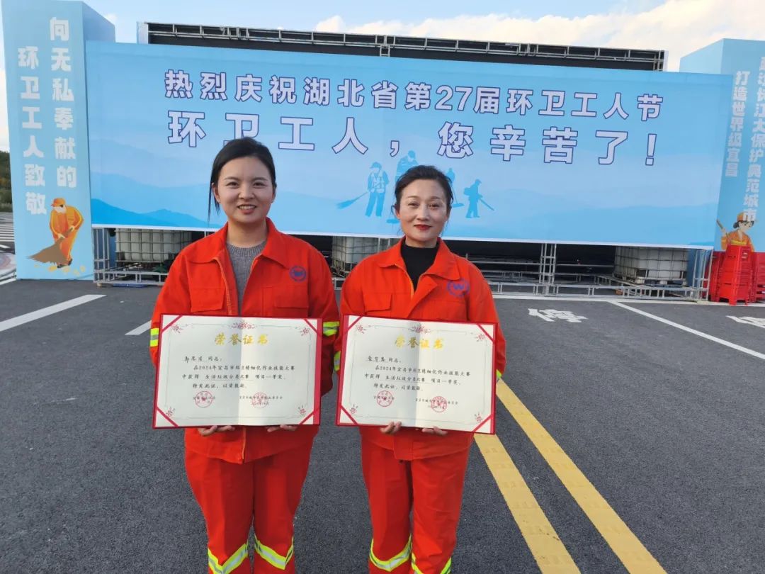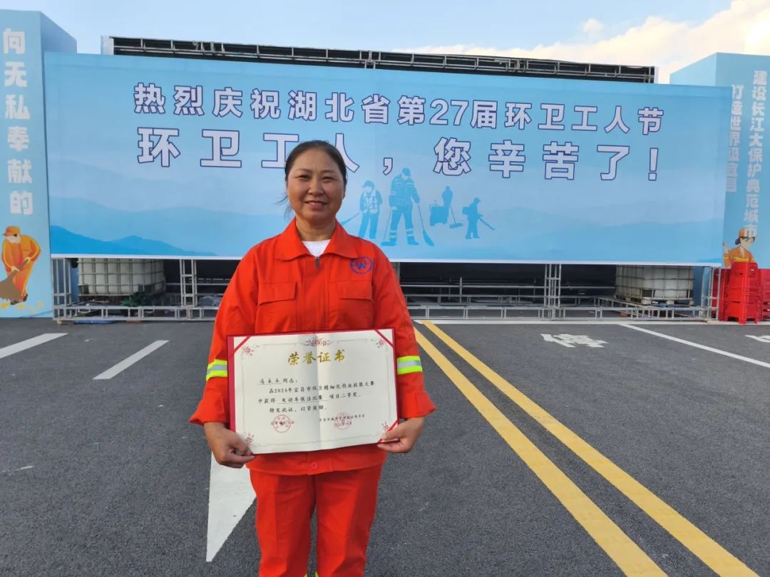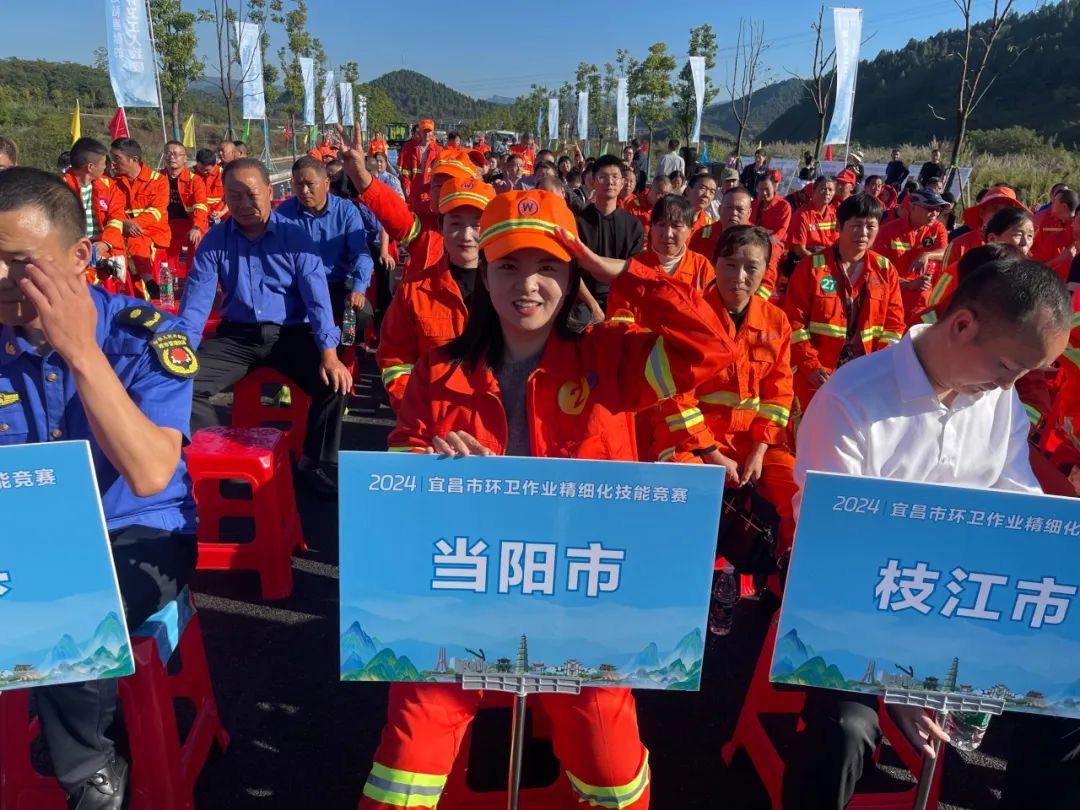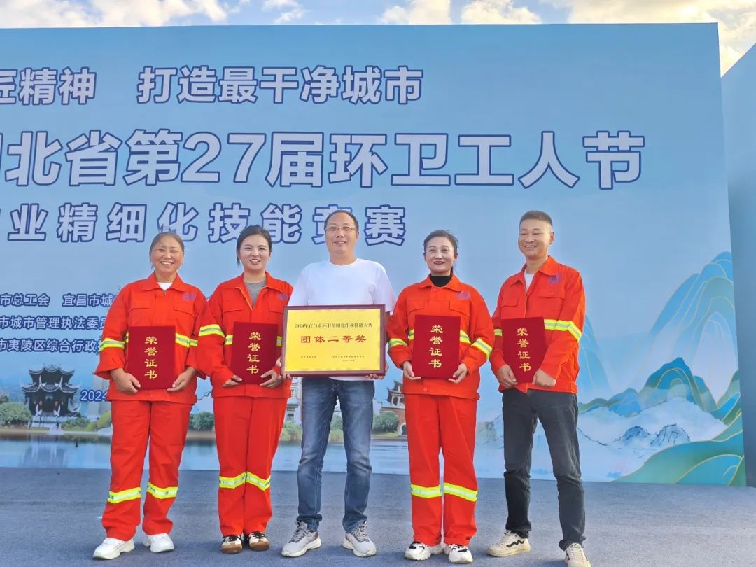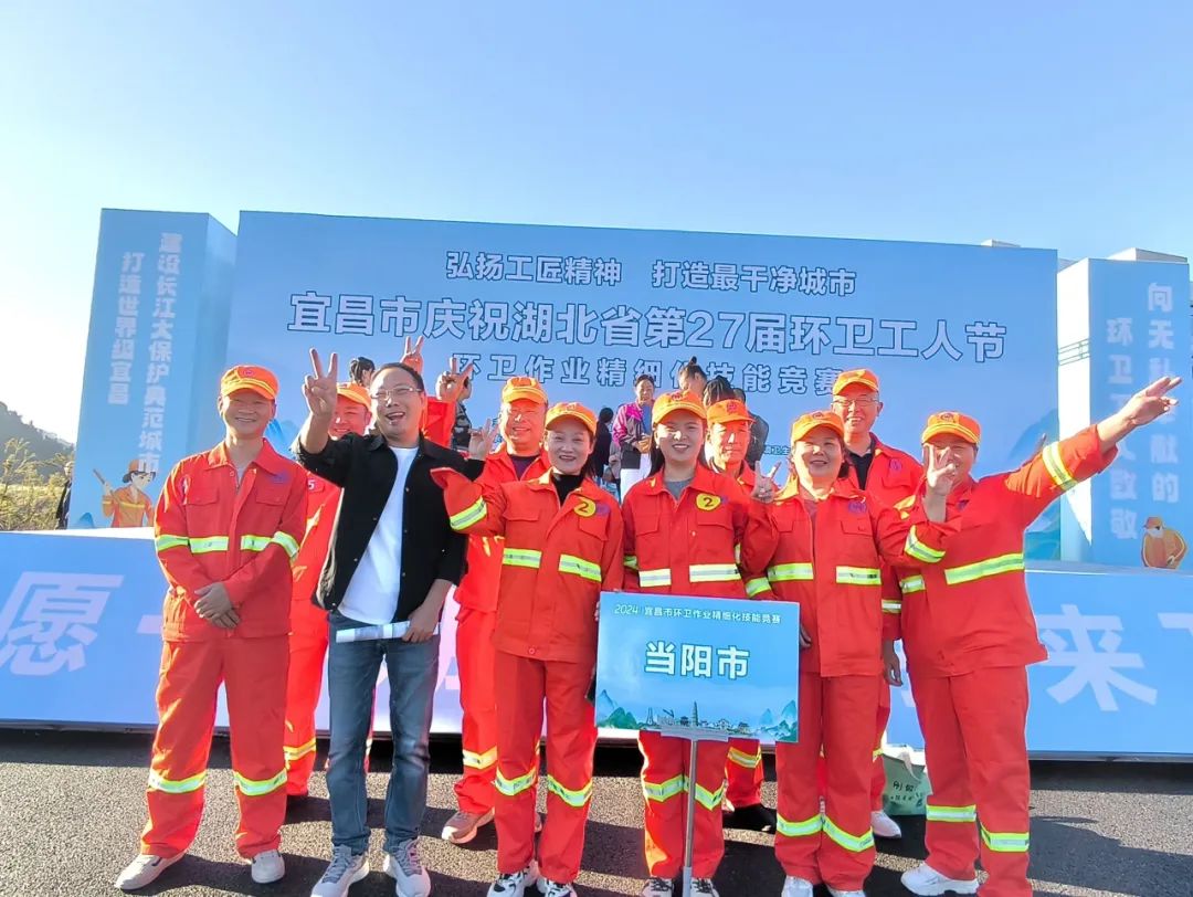 在湖北省第27个环卫工人节来临之际,近日,宜昌市城管委组织开展以“弘扬工匠精神 打造最干净城市”为主题的宜昌市环卫作业精细化技能竞赛。宜昌市共有16支环卫代表队128余名“城市美容师”同场竞技。当阳代表队在本次宜昌市环卫作业精细化技能竞赛中荣获团体二等奖,金华容、郭思洁荣获生活垃圾分类一等奖,冯庆玉荣获电动车保洁二等奖,李亮荣获洒水车精度洒水三等奖。