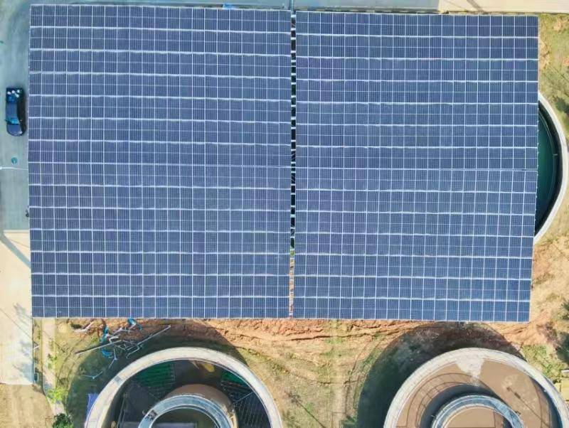 鄂州蓝工水务有限公司红莲湖污水处理厂主要负责庙岭及红莲湖地区污水处理工作,日处理污水5千吨左右。该光伏电站总容量500千瓦,发电板面积1500平方米,采用的是架空建设,人工巡检难度大,安全系数差。