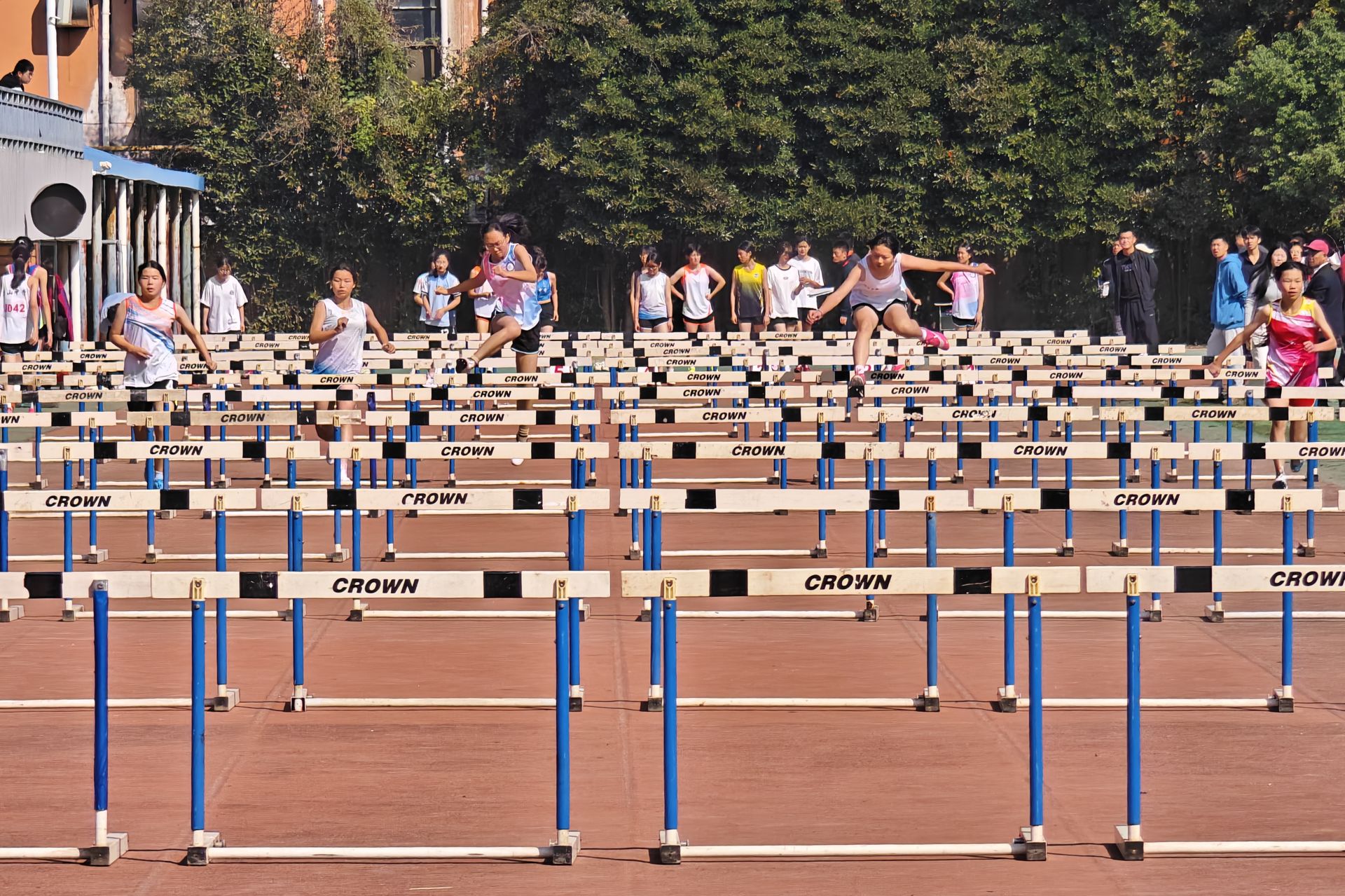 开幕式结束后,小学组男女跳高、跳远预决赛,中学组女子100米跨栏、男子110米跨栏预决赛,高中组男女跳远、跳高预决赛等项目,在各自的赛场上如火如荼地同步展开。运动员们精神抖擞,斗志昂扬,他们的每一跃、每一跨都凝聚着力量与决心。观众席上则是掌声雷动、呐喊声此起彼伏,为场上的运动员们注入了无穷的力量。全体裁判员一丝不苟,确保比赛公平、公正。现场气氛紧张而热烈,充满了青春的活力和竞技的激情。