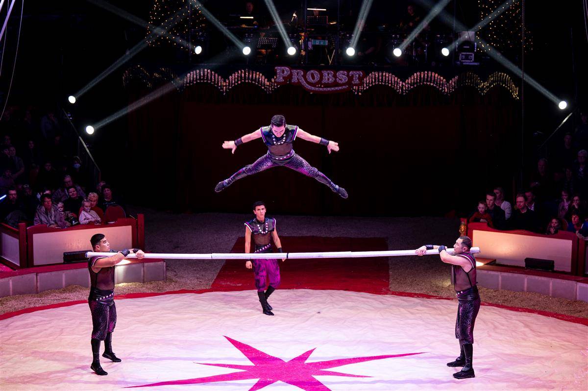 哈萨克斯坦节目《抖杠》则是危险系数较高的惊险之作。演员在不加安全措施的情况下,不断在抖起的杆子上跳跃反转,起跳高度能达到3米-4米。