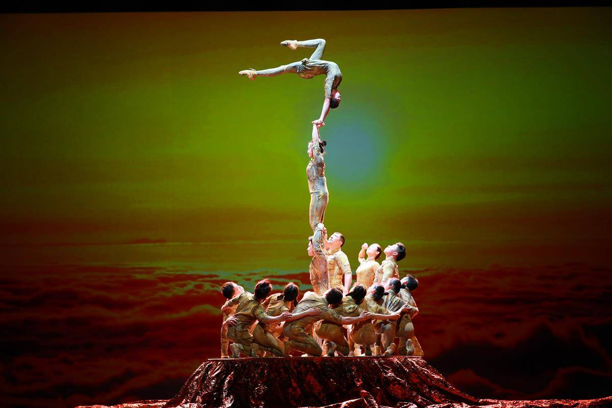 21名青年演员用7组高难度的杂技技巧,在舞台上竖起一座“丰碑”,展示波澜壮阔的英雄赞歌。