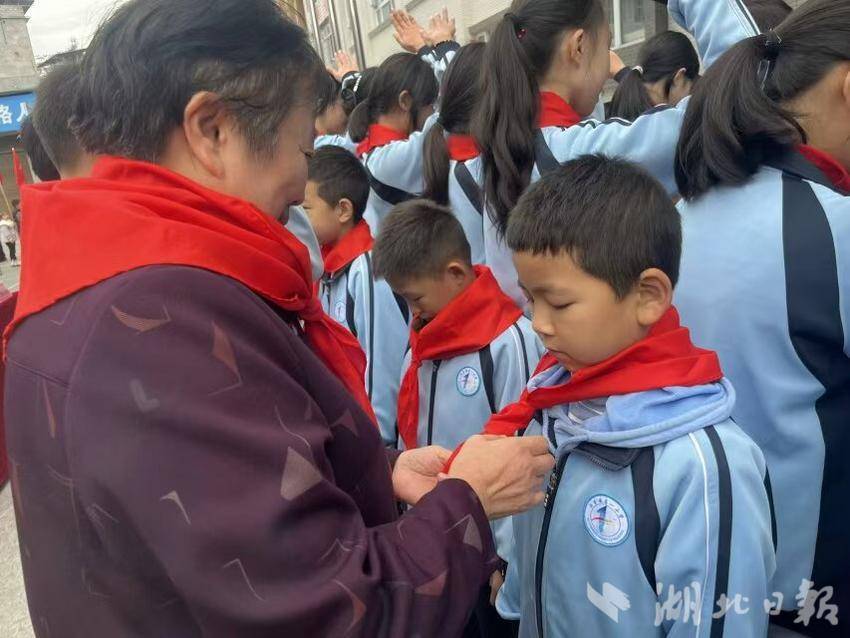学校少先大队部也安排了丰富多彩的节目,学生们倾情呈现了朗诵、剧情剧等表演,不仅展现了学校在“双减”方面取得的成果,也感动了每一位退休教师。退休老师和学生们互相系上红领巾,不仅寄托了退休教师对孩子的期望,也是孩子们对长者的尊敬与爱戴,更在细微之处展现了尊老敬老的社会风尚,令人动容。