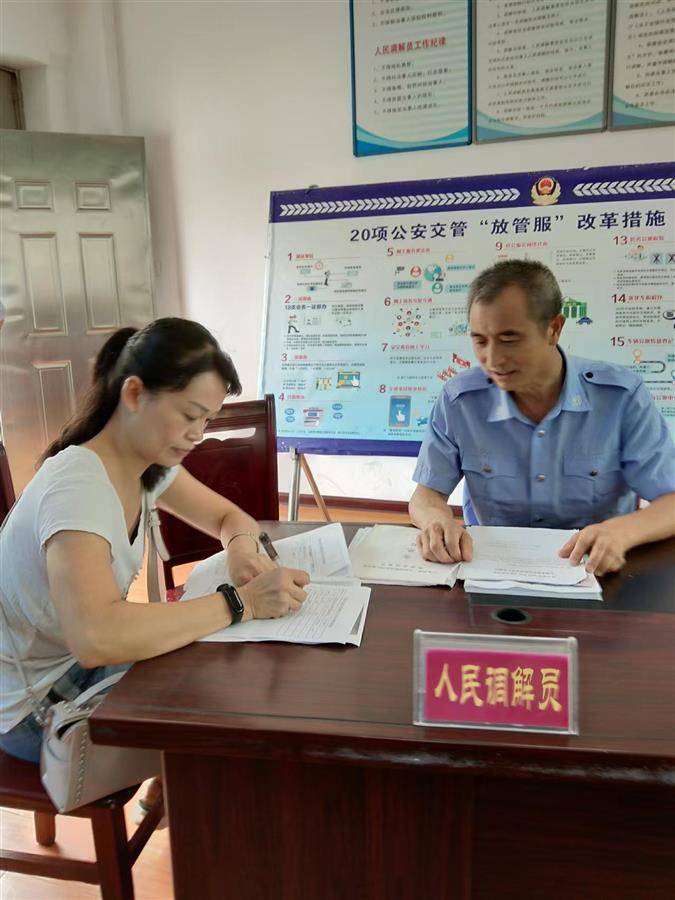 “这就对了嘛!来来来,签协议书。”最终,因电动车擦碰产生矛盾的双方握手言和,这位老人有了更加爽朗的笑声。